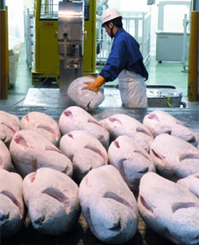 We purchase high-quality frozen raw fish by taking advantage of our long-standing connections with fishery companies all over the country. We also attend landings and check the quality thoroughly.